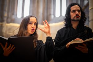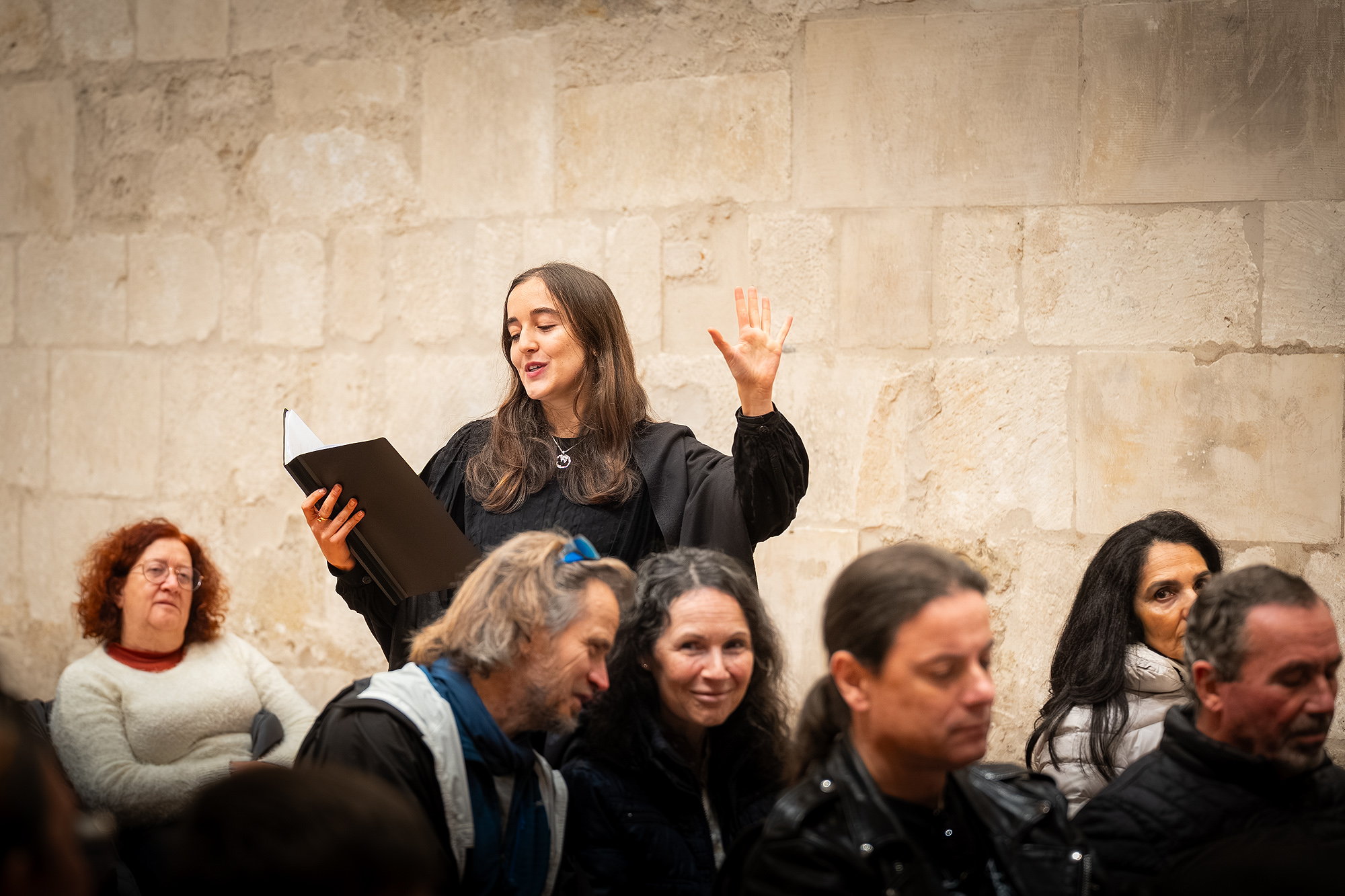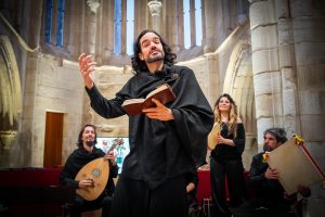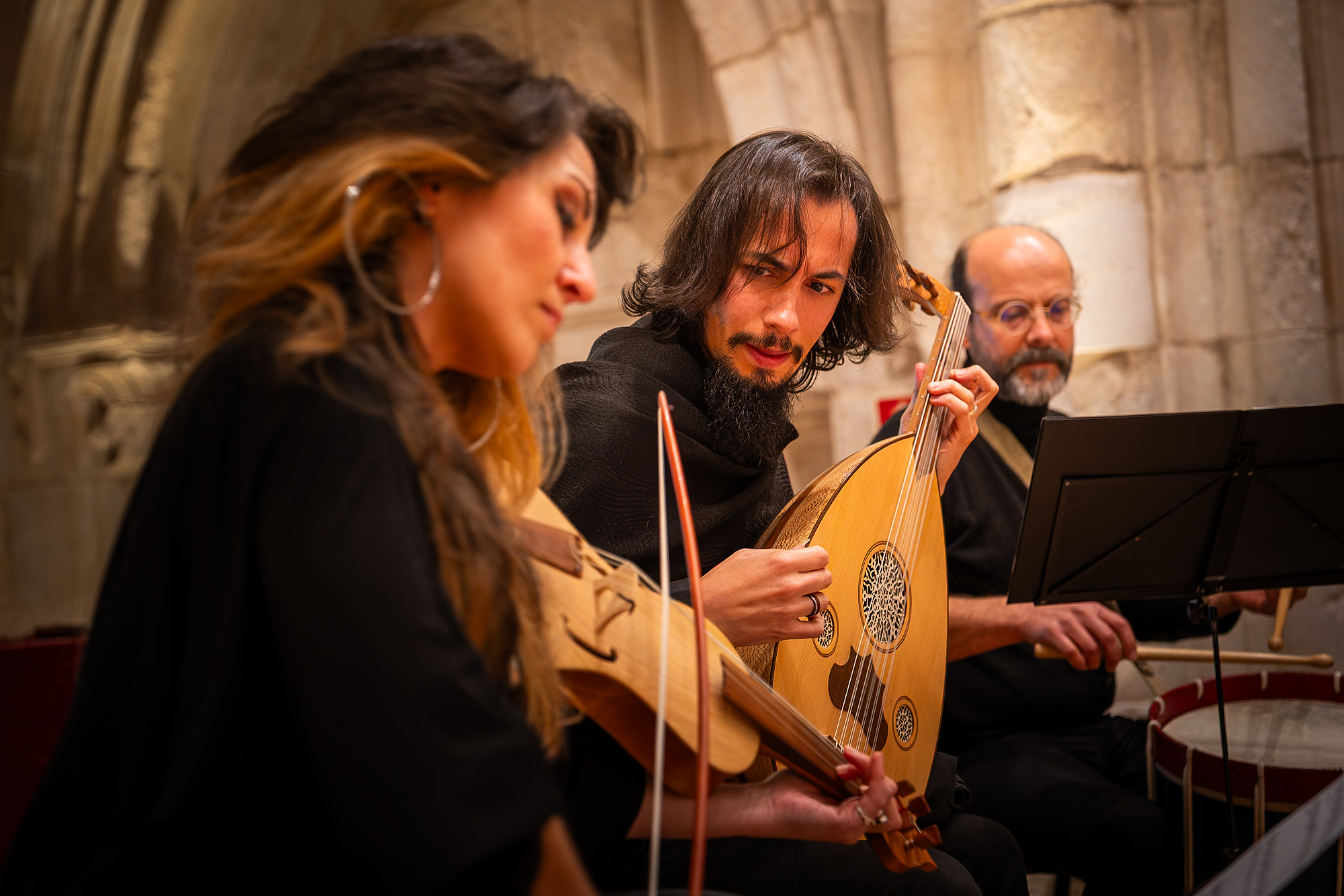 On March 22, the Leiria Medieval Music Cycle 2025 showcased “Da Esteyra Vermelha Cantarey”; a one-of-a-kind performance, where medieval music merged with the voice of Portugal’s greatest heavy metal icon, Fernando Ribeiro. In unison, the metal titan and the two medievalists lead a satirical and provocative spectacle, blending the troubadour tradition with the boldness of the 21st century, celebrating freedom of expression.